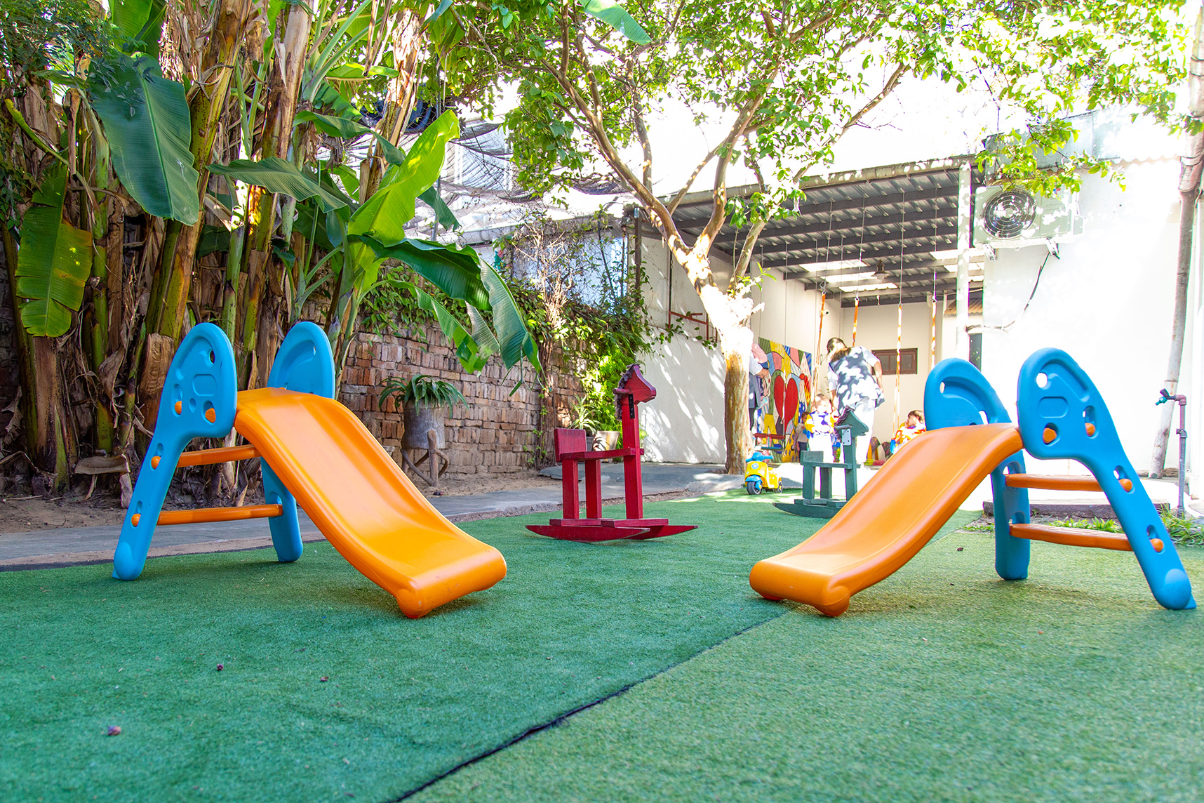 Contamos con un parque con juegos y espacios verdes pensado especialmente para que los niños disfruten de la naturaleza.